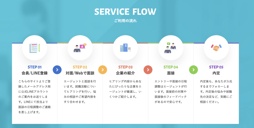 独自の厳しい基準による「ブラック企業排除機能」と、国内でも珍しい「元既卒・第二新卒のカウンセラー」が用意されており、気になる「入社後のミスマッチ」と「誰にも分かってもらえない辛さ」を同時にケアが可能です!